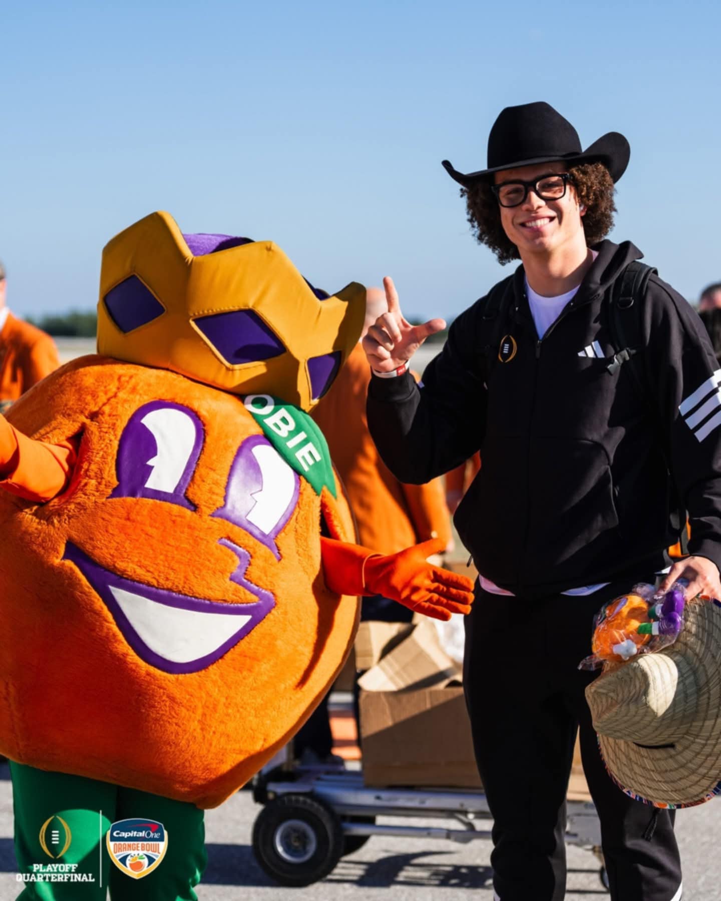 Tiki Island Wear personally delivered these custom straw hats to players and staff as the teams arrived for the 2026 Capital One Orange Bowl, including the Oregon Ducks and the Texas Tech Red Raiders. From the first moments on site, the hats set the tone sunshine, celebration, and the prestige that defines the Capital One Orange Bowl.
