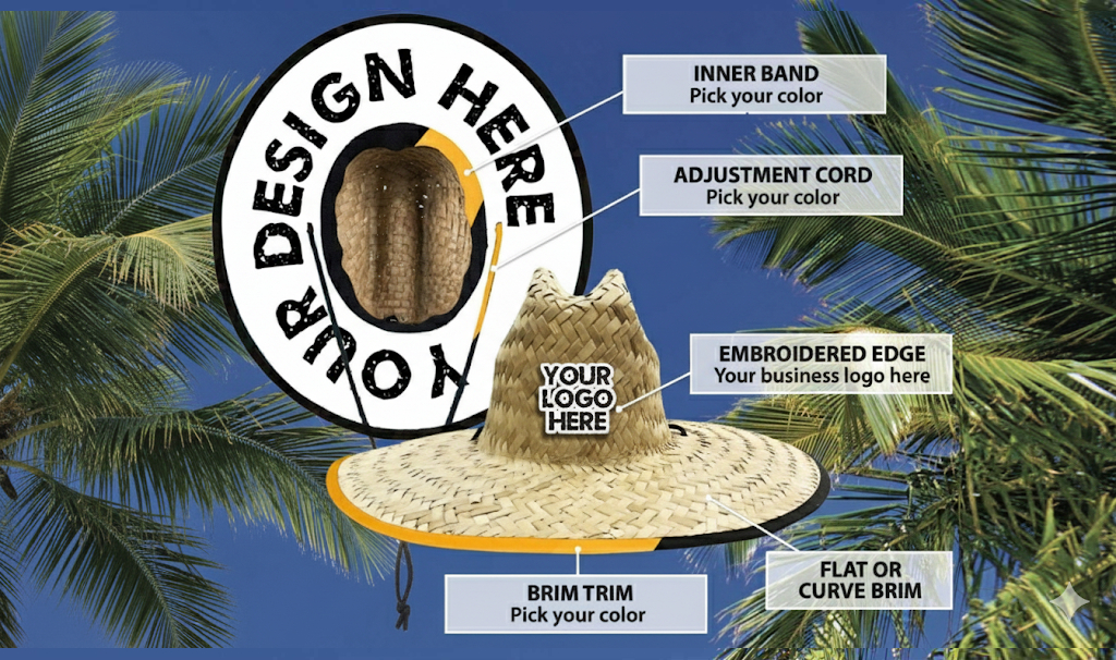 Tiki Island Wear’s custom straw hats are great for retail, gift shops, company branding, on-site locations, staff uniforms, fundraisers, vacations, and more!