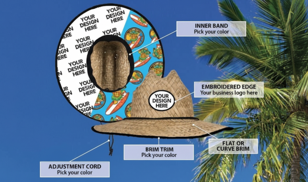 Tiki Island Wear’s custom straw hats are great for retail, gift shops, company branding, on-site locations, staff uniforms, fundraisers, vacations, and more!